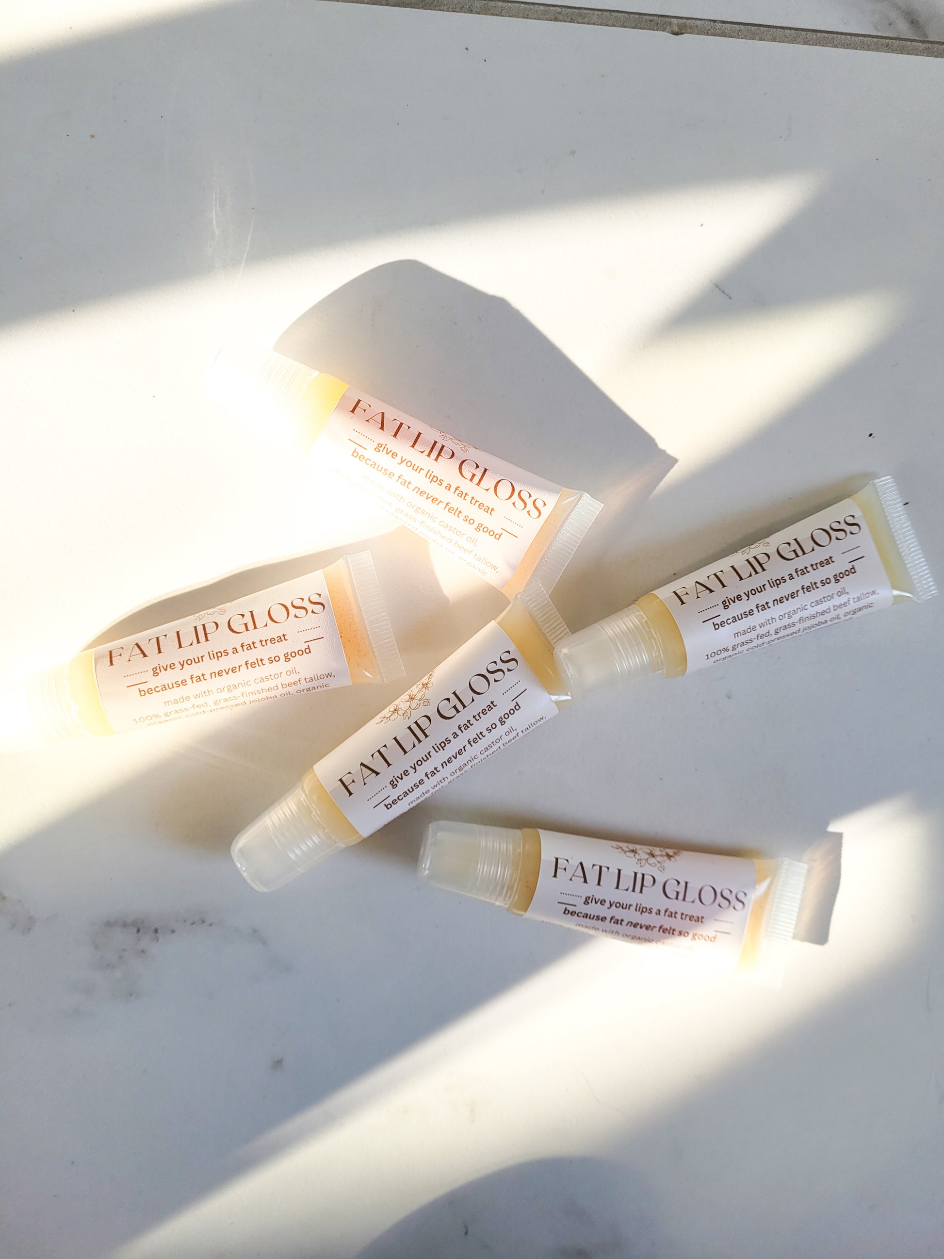 Indulge your lips with the luxurious shine and nourishment of our Fat Lip Gloss. Made with a blend of rich tallow, soothing castor oil, and hydrating jojoba oil, this gloss offers a smooth, non-sticky finish that lasts. With a hint of vanilla essential oil, it leaves your lips feeling soft, nourished, and beautifully glossy. Perfect for everyday wear or a night out, Fat Lip Gloss delivers the perfect balance of hydration and shine, while its natural ingredients ensure your lips stay healthy and pampered.